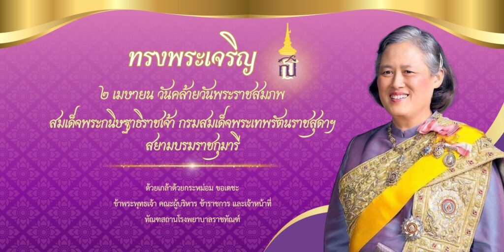 สำนักพระราชวัง ขอเชิญชวนประชาชนร่วมลงนามถวายพระพรชัยมงคล สมเด็จพระกนิษฐาธิราชเจ้า กรมสมเด็จพระเทพรัตนราชสุดา เจ้าฟ้ามหาจักรีสิรินธร มหาวชิราลงกรณวรราชภักดี สิริกิจการิณีพีรยพัฒน รัฐสีมาคุณากรปิยชาติ สยามบรมราชกุมารี เนื่องในโอกาสวันคล้ายวันพระราชสมภพ วันที่ 2 เมษายน 2569 ผ่านระบบออนไลน์ ที่เว็บไซต์หน่วยราชการในพระองค์ https://www.royaloffice.th/ (หรือกดบนรูปภาพด้านบน) ระหว่างวันที่ 1 – 3 เมษายน 2569